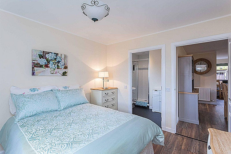 Hard wearing laminate flooring flows through the open plan rooms and the triple aspect floods light into the lodge. The spacious lodge has ample room for dining table and chairs and various other sitting room furniture and a working area for your laptop. There are two double bedrooms one with an en suite shower room and another family Jack & Jill shower room.